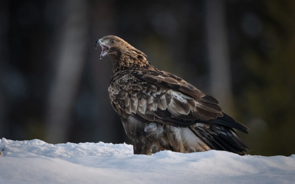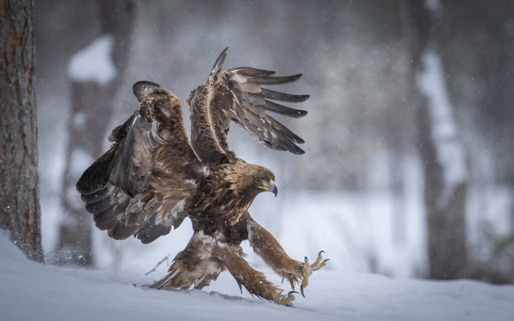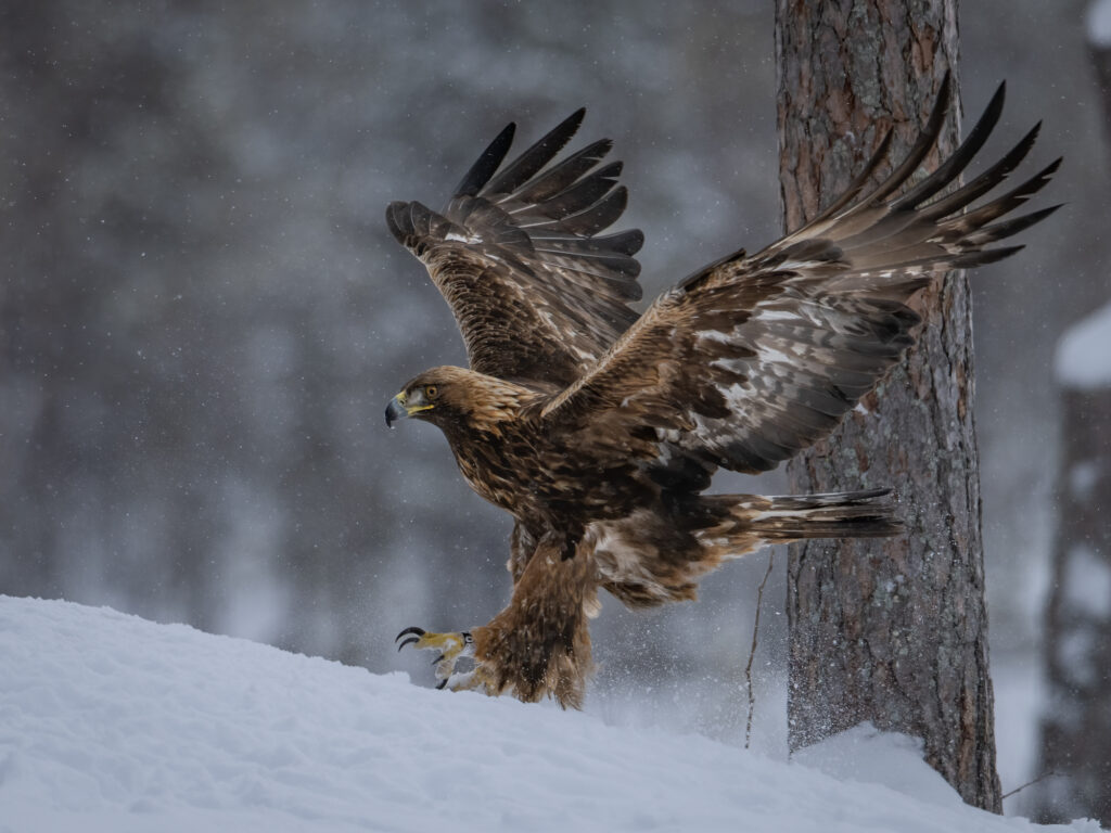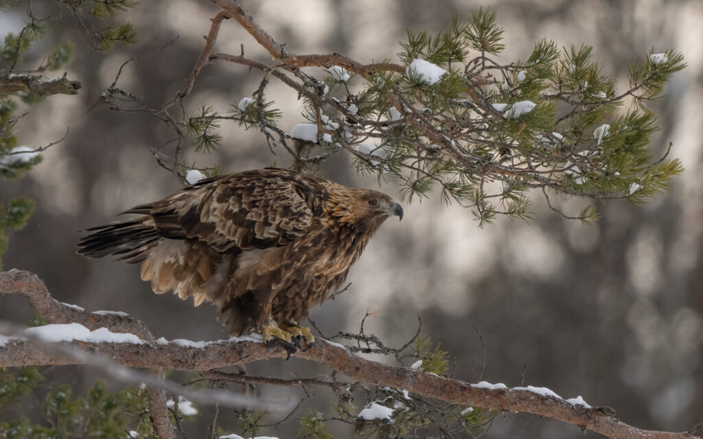 There is no better place to photograph Golden Eagles, on the edge of the Scandanavian Pine forests, from Connys heated purpose built hides.