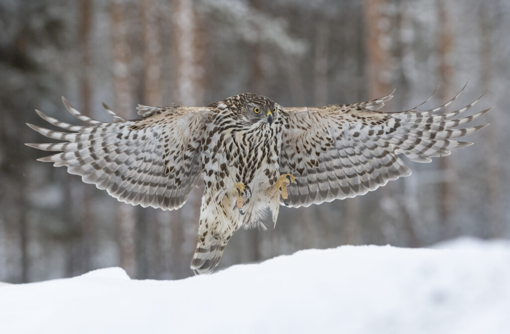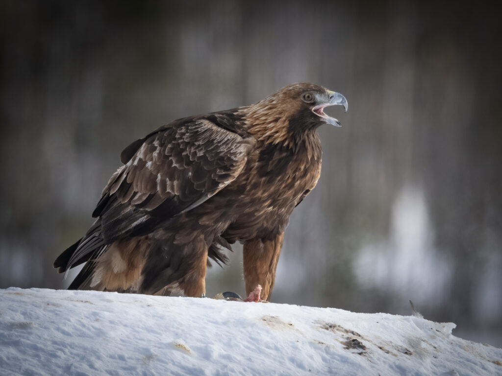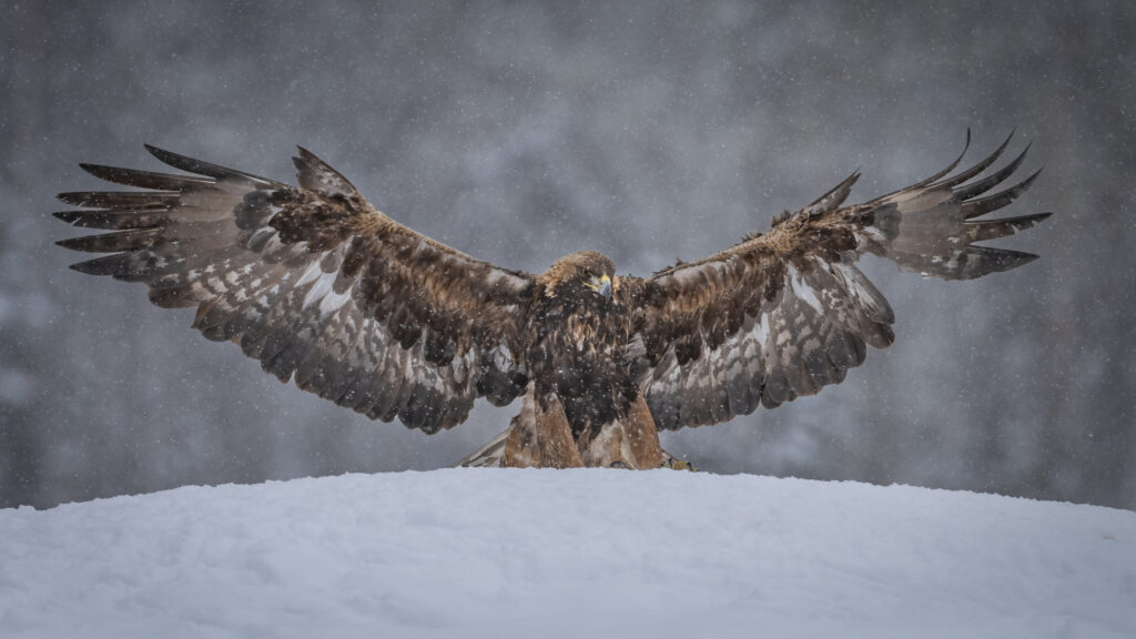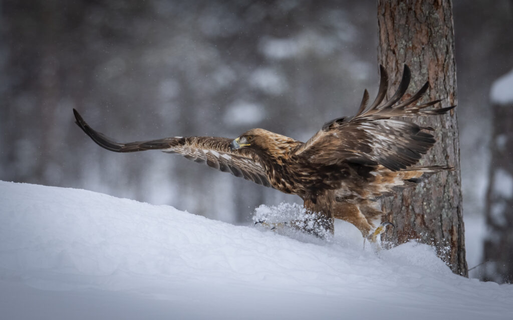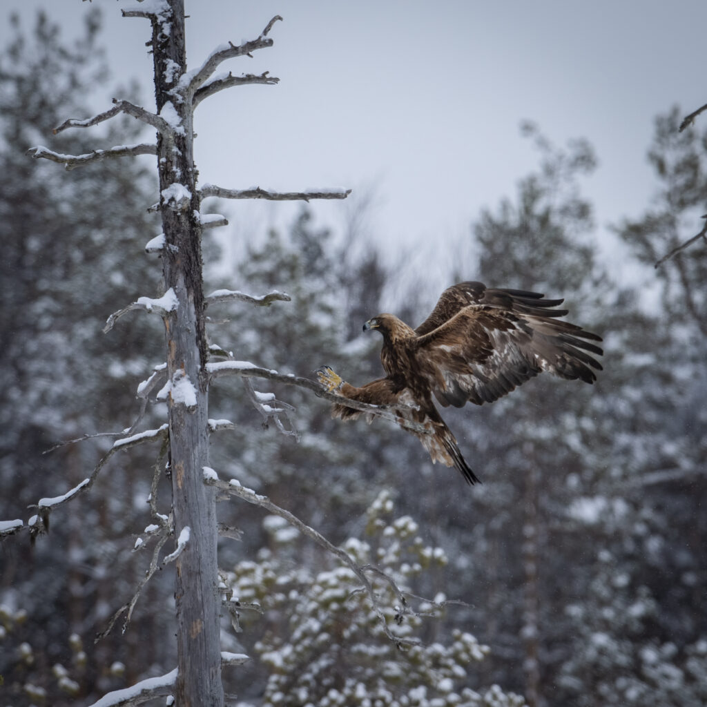 There is no better place to photograph Golden Eagles, on the edge of the Scandanavian Pine forests, from Connys heated purpose built hides.