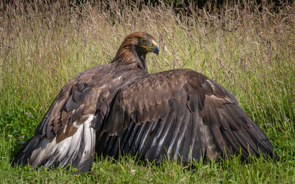 The Goshawk will be flown through the trees around the pond, and will give awesome images as they twist and turn through the branches. The Golden Eagle will be flown across an open meadow, hunting a lure machine, you will have amazing opportunities to photograph this iconic bird in flight, in active hunt mode.
